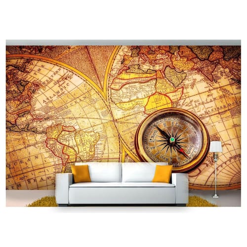 Papel De Parede Mapa Mundi Antigo Bússola Nmu17