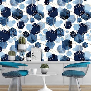 Papel De Parede Marmore Azul Dourado Adesivo Autocolante