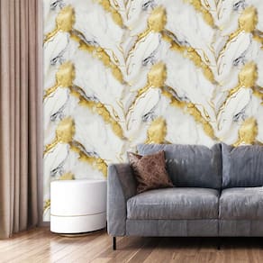 Papel De Parede Marmore Branco Dourado Autocolante Sala
