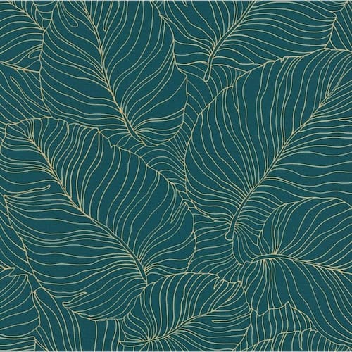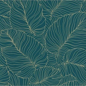 A folhagem tracejada nesse papel de parede faz com que a cor do plano de fundo seja mais predominante. Perfeito para quem também gosta do minimalismo.