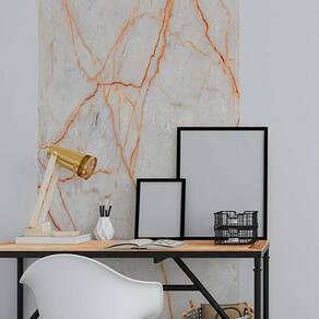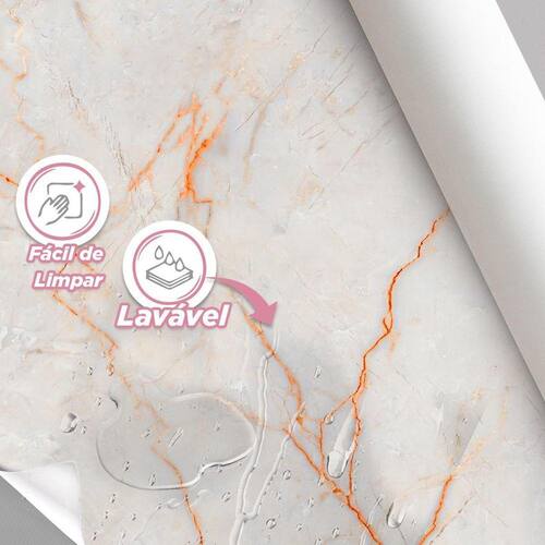 Papel De Parede Painel 3D Mármore Carrara Fio Laranja 1M