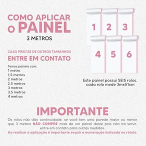 Antes de instalar orientamos abrir os rolos e simular a montagem no chão, garantindo que o painel será montado na ordem correta da estampa comprada. Qualquer problema ou dúvida, favor entrar em contato antes da instalação não aceitamos devolução de produto utilizados .