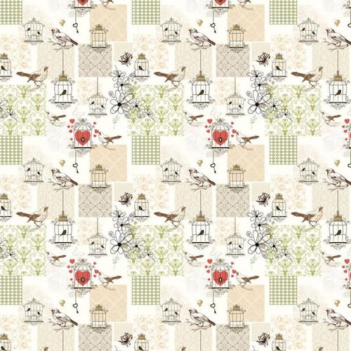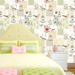 Papel de parede pássaros coração gaiola autocolante lavável