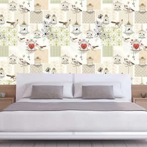 Papel de parede pássaros coração gaiola autocolante lavável