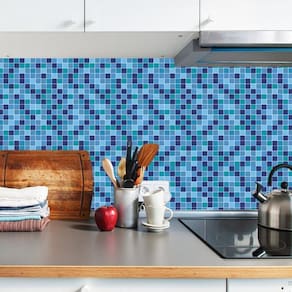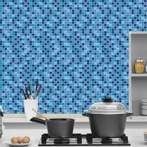 Papel de parede pastilhas azul piscina autocolante cozinha