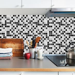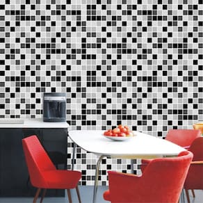 Papel de parede pastilhas preto e cinza autocolante cozinha