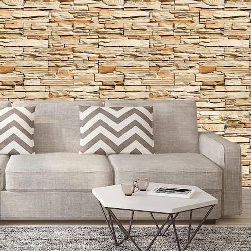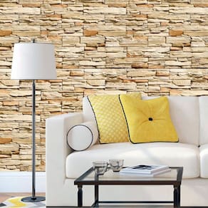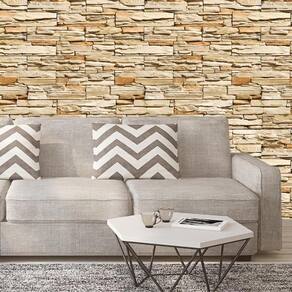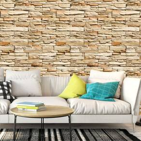 Papel De Parede Pedra E Tijolos Areia Autocolante Lavavel