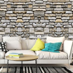 Papel de parede pedra tijolos cinza claro adesivo sala