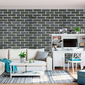 Papel De Parede Pedra Tijolos Preto Autocolante Sala Quarto