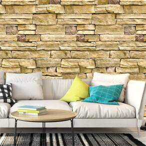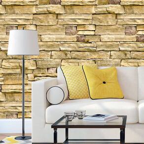 Papel De Parede Pedras Tijolos Amarelo Claro Adesivo Sala