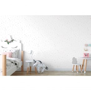 Além de opções de estampas diidas, delicadas e fofíssimas, a coleção Pippo conta com papéis de cor única, ideal para compor a decoração dos ambientes, compondo estampados e lisos em paredes laterais.