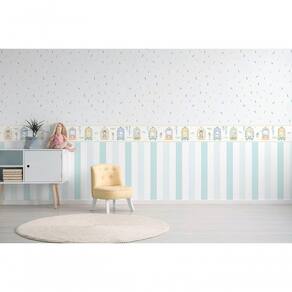 Além de opções de estampas diidas, delicadas e fofíssimas, a coleção Pippo conta com papéis de cor única, ideal para compor a decoração dos ambientes, compondo estampados e lisos em paredes laterais.