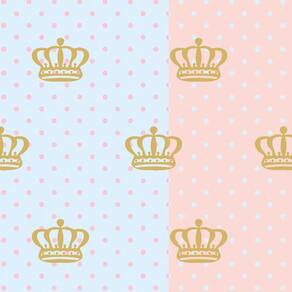 Papel de parede poa rosa e azul com coroa dourado adesivo