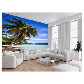 Papel De Parede Praia Mar Coqueiros Areia Céu 3,5M Npr313