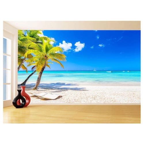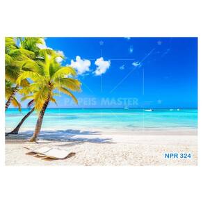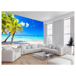 Papel De Parede Praia Mar Coqueiros Areia Céu 3,5M Npr324