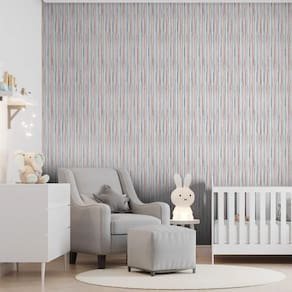 Papel de Parede Revoada Listrado Aquarela Azul, Cinza e Vermelho 4425