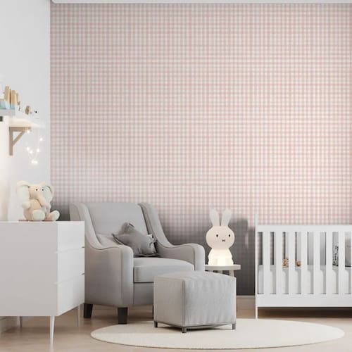 Papel de Parede Revoada Xadrez Picnic Pincelada Rosa 4440