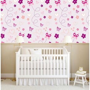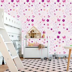 Papel De Parede Rosa Borboletas Corações Autocolante Quarto