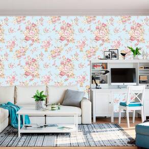 Papel De Parede Rosas Com Azul Floral Adesivo Sala Quarto