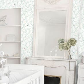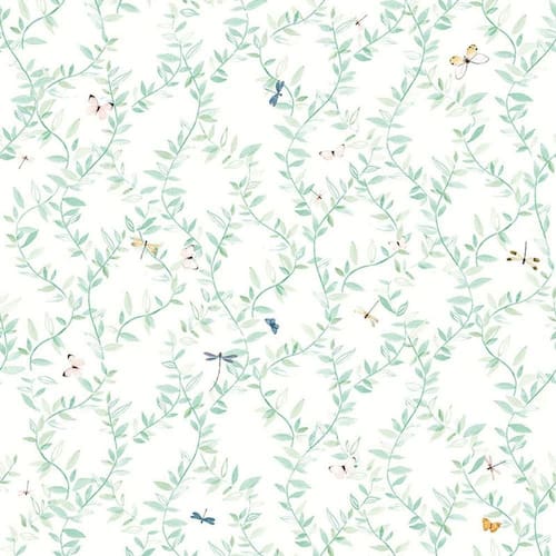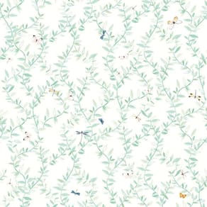 Esse papel de parede é composto por um design delicado, onde borboletas parecem voar por dentre as plantas que parecem cair pelas paredes. A atmosfera do quarto das crianças ficará mágica!