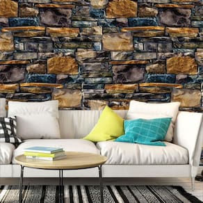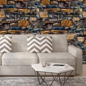 Papel De Parede Tijolos E Pedras Queimados Adesivo Sala