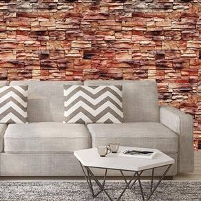 Papel De Parede Tijolos E Pedras Vermelhas Adesivo Lavavel