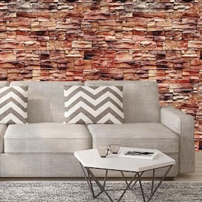 Papel De Parede Tijolos E Pedras Vermelhas Adesivo Lavavel