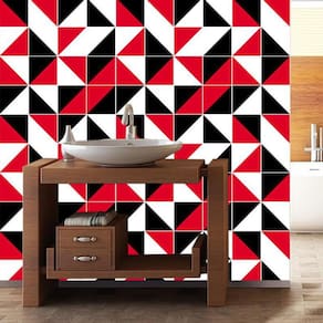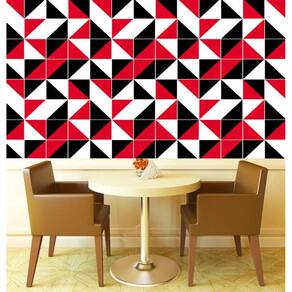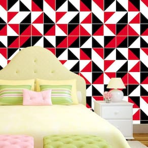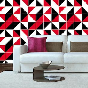 Papel De Parede Triângulos Geométrico Vermelho Branco Preto