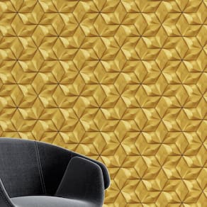 Papel de Parede 3D Geométrico Hexágono Ondas Douradas 3M