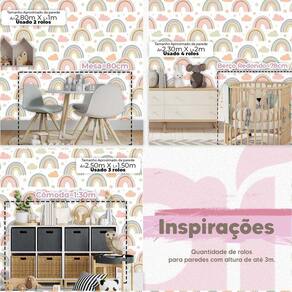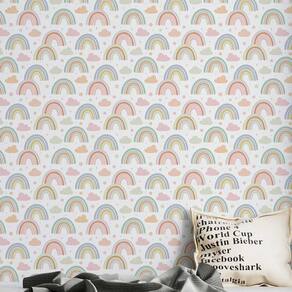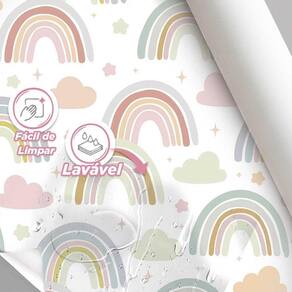 Esse papel de parede possui uma estampa aquarela de arco-íris colorido, que traz vida e alegria ao ambiente. Além disso, sua textura lisa e sem relevo 3D garante um visual suave e delicado.