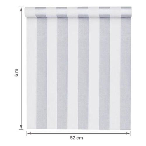 Renove seu ambiente com estilo e praticidade utilizando o Papel de Parede Importado de Acabamento Vinilizado com listras prata e branco Com medidas de 52cm x 6m, esse papel de parede é a peça-chave para transformar áreas secas, como salas, quartos e escritórios, de forma econômica e rápida.