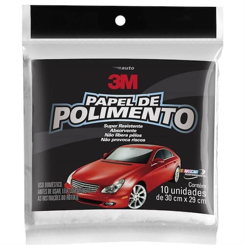 O Papel para Polimento 3M é um produto desenvolvido para aplicação e remoção de ceras e compostos polidores na indústria de reparação e embelezamento automotivo. É destinado para uso em trabalhos de polimentos e acabamentos em superfícies que necessitem de materiais que não provoquem riscos, sejam absorventes e não liberem pêlos. O produto é de fácil aplicação com excelente durabilidade, também pode ser utilizado para limpeza dos vidros e espelhos de seu veículo.