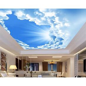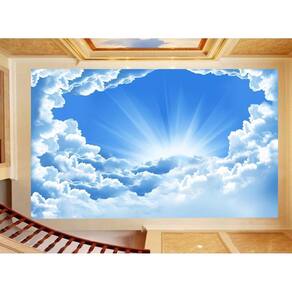 Papel De Teto Céu Azul Nuvem Branca Dia Manhã 3,5M Rof03