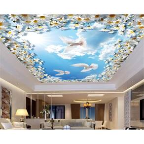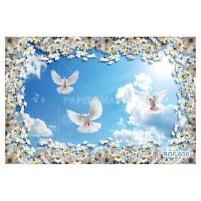 Papel De Teto Céu Azul Nuvens Flores Pombas 3,5M Rof36
