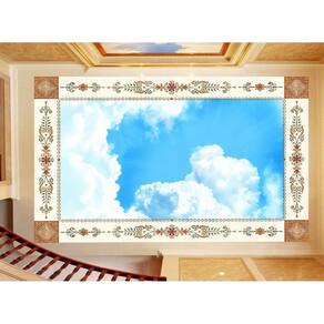 Papel De Teto Céu Azul Nuvens Moldura Impressa 3,5M Rof26