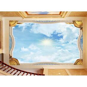Papel De Teto Céu Azul Nuvens Moldura Impressa 3,5M Rof32
