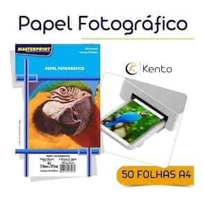 Apresentamos o Papel Fotográfico Glossy A4 180g, à prova d'água, perfeito para suas impressões de alta qualidade Este pacote contém 50 folhas, projetadas especialmente para uso em impressoras jato de tinta.