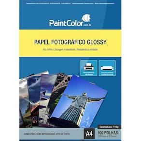 Qualidade e economia são palavras que definem bem o Papel Fotográfico Glossy 110G A4. Recomendável para impressões de catálogos e panfletos por ser leve e maleável. Nome: Papel fotográfico glossy A4 110g Características: Quantidade: 100 folhasTamanho: A4 (21x29,7)cmGramatura: 110gTecnlogia: Cast-coatedAcabamento: Glossy(brilhoso)Indicado: Catálogos e panfletosCompatibilidade: Jato de tinta coranteOrigem: Importado Garantia: Contra defeito de fabricação Ean: 7908148600249