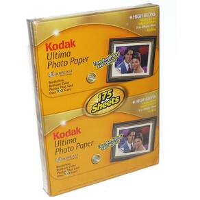 Kodak ultima papel fotográfico funciona em todas as impressoras a jato de tinta. Este é o melhor papel fotográfico Kodak com tecnologia colorlast para fotografias a cores brilhantes que duram mais de 100 anos. Acabamento, papel de 71 lb (270 g/m2, 10 mil). Permite que você imprima fotografias sem margens 4 " x 6 ". 175 folhas - Alto brilho - Verdadeiro margens 4 " x 6 " fotos - 175 folhas - colorlast tecnologia – fotografias a cores brilhantes que duram mais de 100 anos - universalmente compatíveis com todas as impressoras a jato de tinta