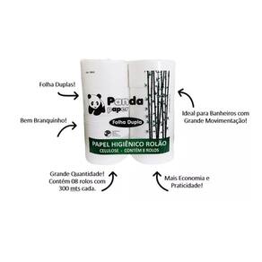 Papel Higiênico Rolão folha dupla 8 rolos Panda Paper Peso por fardo: 4,76 kg. aproximado