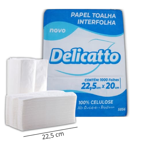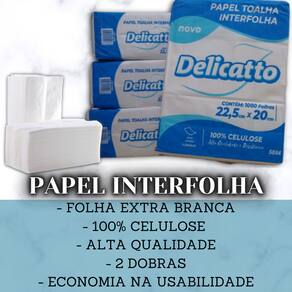 Toalhas de papel interfolhadas fabricada com matéria prima selecionada 100% fibras de celulose. Contém duas dobras, tonalidade branco, embalagem em fardo papel kraft.