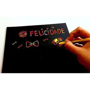 Papel Mágico A4 210X297Mm 5 Folhas Atenção: imagens meramente ilustrativas: Contém: 1 un - papel mágico a4 210x297mm 5 folhas. + incluso Papel colorido revestido por uma camada preta. Permite que você desenhe com o , já incluído no produto, arranhando a superfície e fazendo com que a criatividade apareça no papel. Para todas as idades. As crianças se divertem, os adultos relaxam e todos adoram - não tóxico. Dicas: 1 - desenhas apenas com o . 2 - não utilizar instrumentos de metal. 3 - não manuseie com as mãos molhadas. 4 - use e abuse da sua imaginação. Recomendações: - 5 folhas. - composição: celulose e plásticos. - validade: indeterminada. Medidas aproximadas: 210mm x 297 mm. Ean: 7808263598837