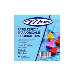 Papel para Dobradura Menno 10x10cm 50 Folhas Papel para origami com diversas cores vibrantes Monolúcido, com uma face colorida, ideal para dobrar, cortar e colar. Solte sua imaginação - Contém: 50 folhas - Cores - 5 Folhas por cor - Marca: Menno - Modelo: Papel dobradura Origami - Formato: 10 x 10 cm - Gramatura: 50g/m - Dimensões: 10 x 10 cm - Composição: Papel monolúcido Marca: Não Informado