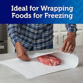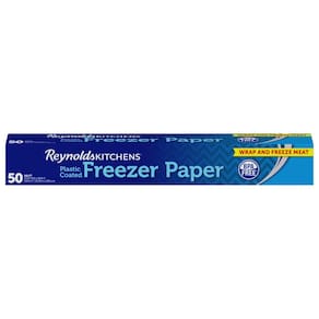 Reynolds Papel para freezer Reynolds Kitchens – Rolo de 1,5 metros quadrados, branco - Este pacote contém um rolo de 4,5 metros quadrados de papel de congelador revestido de plástico Reynolds Kitchens - Junte-se a nós e Feeding America na luta contra a fome. Para cada compra on-line que você fizer em setembro, uma refeição será fornecida aos vizinhos necessitados. *$1 ajuda a fornecer pelo menos 10 refeições protegidas pela Feeding America em nome dos bancos de alimentos membros. - O lado revestido de plástico do papel para congelador mantém a umidade, sabor e nutrição e protege contra queimaduras no congelador. - O lado externo é um papel de embrulho durável para freezer que é fácil de escrever para uma etiquetagem rápida. - O papel de congelador revestido de plástico permite que você armazene seus alimentos sem sacrificar o sabor. - Reynolds papel para congelador é ideal para proteger balcões ou forro de prateleiras e gavetas.