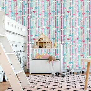 Papel Parede Adesivo Linhas Corações Coloridos Teen Infantil