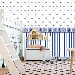 Papel Parede Adesivo Urso Coroa Azul E Listra Infantil Bebe