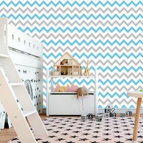 Papel Parede Azul Branco E Cinza Chevron Decorativo Adesivo
