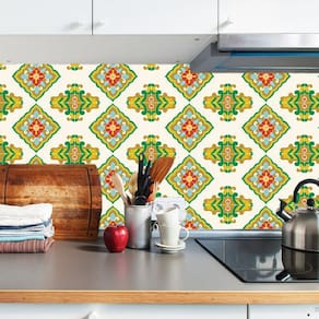 Papel parede azulejo flor vermelha e verde cozinha banheiro