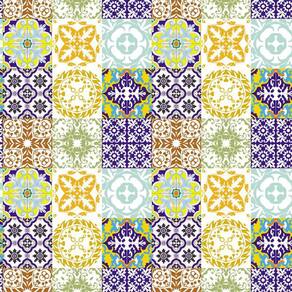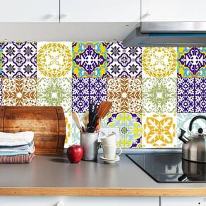 Papel parede azulejo tons amarelo e azul cozinha lavatório