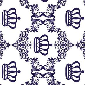 Papel Parede Branco Com Coroas Azul Escuro Adesivo Infantil
